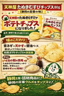 〇和風しゅうゆ仕立て、天神屋のたぬきむすびがチップスに!